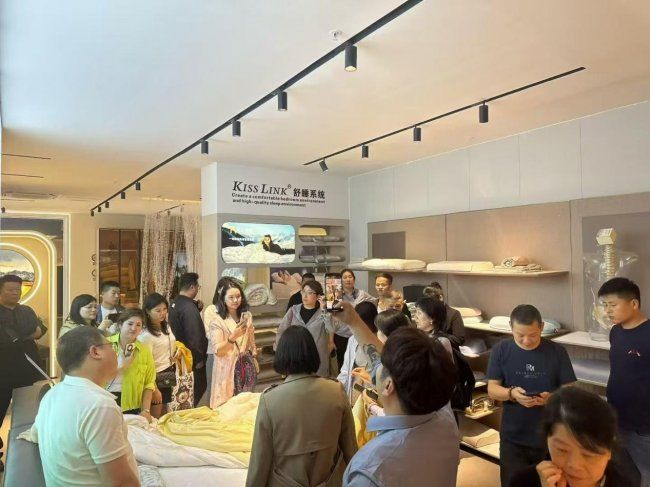 在本次双展联动中,富华名创集团精准把握家居消费升级趋势,重点展出席梦思黑金系列与亿吻草本助眠系列两大核心产品,成为展会现场备受关注的焦点。席梦思黑金系列深耕高端睡眠领域,以精湛的工艺、严苛的选材和贴合人体工学的设计,打造极致舒适的睡眠体验,彰显高端家居品质,满足消费者对高品质睡眠生活的追求;亿吻草本助眠系列则聚焦健康睡眠需求,创新融入草本助眠科技,将天然草本精华与睡眠家居产品完美融合,兼顾舒适度与健康性,直击现代人群睡眠痛点,凭借差异化的产品优势,快速俘获了众多客商的青睐。