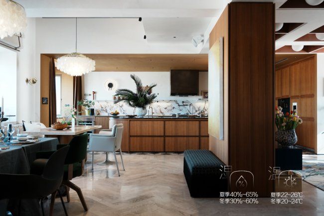 如果说“隐”是这份合作的美学底色,那“高级定制”便是其核心实力。陈暄的私宅有着鲜明的个性化需求:需适配北京的气候特质、要守护家中藏品、兼顾顶层女儿房的舒适、解决开放式厨房的痛点,A.O.史密斯团队以深度共创的态度,量身定制了专属解决方案,将真恒温、恒湿、恒氧、恒洁、恒静的“好风好水”精准适配生活场景。