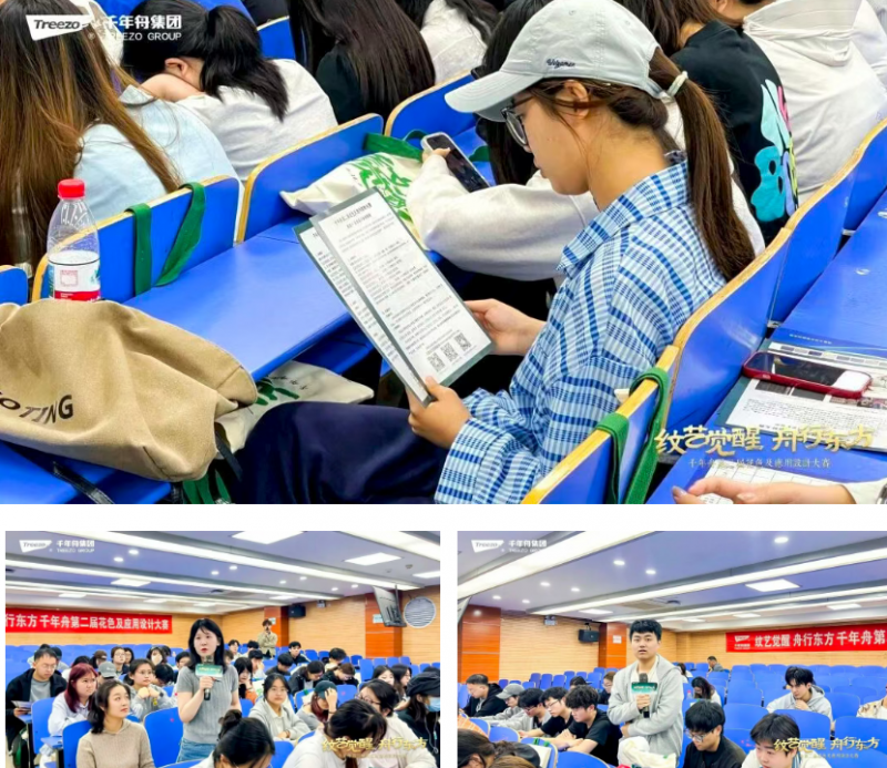 千年舟以本次花色及应用设计大赛为纽带,走进校园直面青年学子,深度解读大赛核心主旨、花色研发趋势、家居应用场景,将行业前沿技术、市场需求导向与产业实践经验带入课堂。