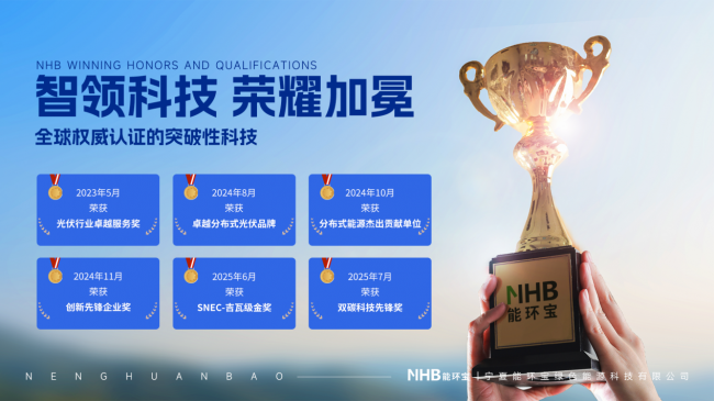 2024年,能环宝在技术创新与品牌建设上迎来双丰收。6月,在SNEC PV第十七届国际太阳能光伏与智慧能源(上海)大会暨展览会上,其NiOS™系统荣获组委会评选的“SNEC十大亮点评选吉瓦级金奖”。8月,在维科网主办的评选中,公司获“维科杯·卓越光伏电站运维企业奖”以及“维科杯·卓越分布式光伏品牌”奖。10月,在分布式能源论坛组委会与中国能源网主办的“中国分布式能源二十年”纪念活动中,能环宝获评“杰出贡献单位”。11月,于中国国际光伏与储能产业大会上,公司从组委会手中接过“太阳神奖全球光储·中国名片·2024年度创新先锋企业”的奖项。