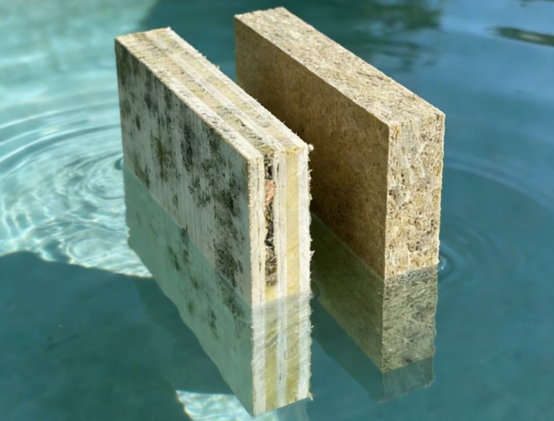与难燃胶合板对比,传统产品遇水3天左右便开始出现霉斑和膨胀;与石膏板相比,石膏板遇水软化的短板更是人尽皆知,完全无法用于卫生间、地下室等高湿区域。而泰岩超能阻燃板不仅防水,更可水洗、可泡水,满足P12型高湿状态下使用的重载型刨花板防潮要求,从根源上杜绝因返潮导致的工程质量问题。