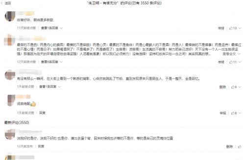 你曾来过,有缘无分。歌曲一经发布便突破了999+的收听与评论,无数拥有相似情感经历的听众在评论区留下了自己的感情故事与爱情宣言,听众与歌手情感上的共鸣成功将这首歌推上了一个新的高潮,随后QQ音乐与酷狗音乐争相发表,众多的好评也将朱卫明这个曾经默默无人的音乐人带到了大家的面前。