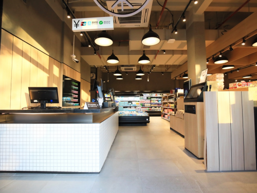 此外,种子集市作为实地社区配套的新型农贸市场,涵盖生鲜、水产、蔬菜、水果等摊位。与传统集市不同,种子集市给业主提供了多种支付结账方式,包括智能自助收银系统、人脸识别收银系统,免除繁琐的人工收银和排队结账的困扰,让业主买单更加便捷。
