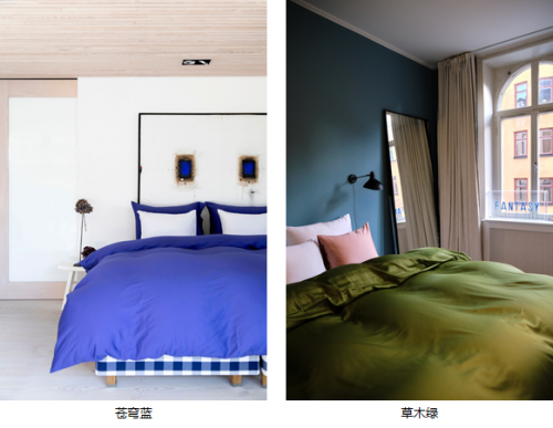 其中,苍穹蓝的创作灵感来自乔治娅•奥•吉弗(Georgia O’keefe)于新墨西哥州创作的作品《云层上的天空》,与自然融为一体的色调令人心驰神往。草木绿更加清新含蓄,新颖华丽,可将整个系列融合为一幅壮丽的画卷,为夏日增添丝丝清凉。翡翠绿优雅大方,既可搭配浅色调凸显新奇趣味,也可搭配深色调完美相称。灿金黄则更为果敢大胆,可为配色板平添一抹奢华质感。浅卡其与奶油棕可作为搭配明亮色调的万能底色,配以其它任一色彩都能相得益彰,为卧室增添宁静、沉稳气质。