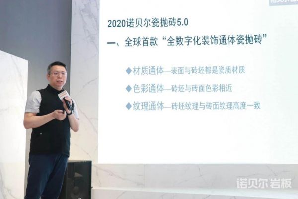 吴云松介绍道:近几年,岩板,打破了家居、石材、陶瓷的界限,作为行业技术领导者与设计应用的推广者,诺贝尔岩板突破行业极限,堪称岩板中的顶配,刷新行业新认知。