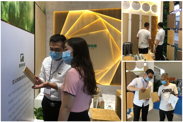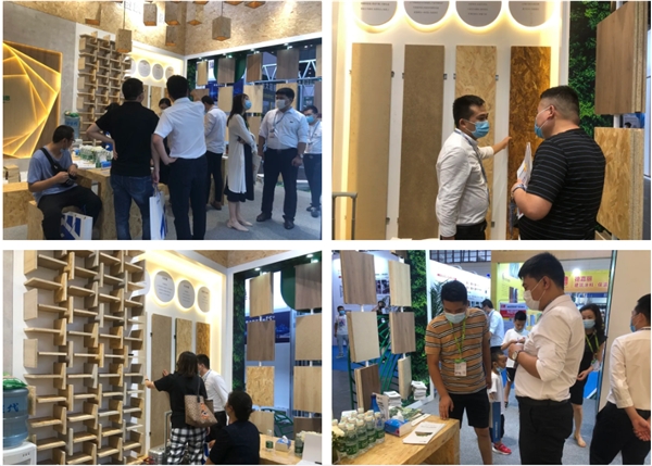 针对高档家庭、大型工程装修客户,澳思柏恩实木切片OSB板具有结构稳定、绿色健康、无醛加工、天然松香、可塑性强等优势,广受中青年人群喜爱,能更好的的满足追求环保、个性的家具厂商。同时,OSB板还是木制装配式建筑的主要材料之一,因此也使得澳思柏恩展馆在本次展会上格外受到瞩目。