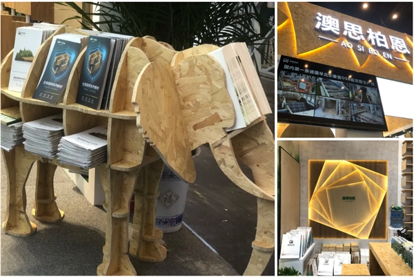 针对高档家庭、大型工程装修客户,澳思柏恩实木切片OSB板具有结构稳定、绿色健康、无醛加工、天然松香、可塑性强等优势,广受中青年人群喜爱,能更好的的满足追求环保、个性的家具厂商。同时,OSB板还是木制装配式建筑的主要材料之一,因此也使得澳思柏恩展馆在本次展会上格外受到瞩目。