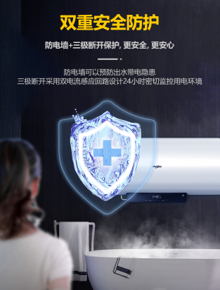 如果说充足的水量让人不用担心洗到一半停水、能够为沐浴提供安全感,那么惠而浦新品电热水器EW系列的双重安全防护则从多方面保护着家人的用水用电安全,防电墙+三极断开保护时刻监控用电环境,及时将危险扼杀在萌芽中;而独有的蓝钛圭内胆有着防腐蚀、防爆裂、防渗水的优秀性能,经久耐用更安全。