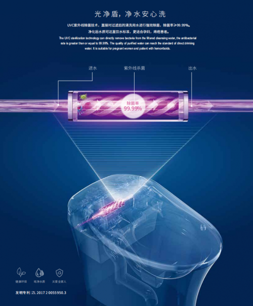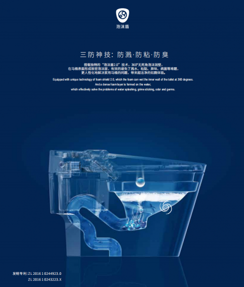 2019年,3.0大健康一体机亮相,同时全新升级了专利泡沫盾技术,进入马桶不溅水、陶瓷不挂污的泡沫盾2.0时代,进一步把“超洁净智能马桶”从概念落到了实处。