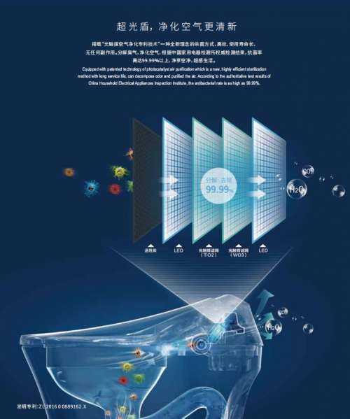2017年,首发“超光盾”技术,利用超级光触媒除臭杀菌,净化空气更清新空气;
