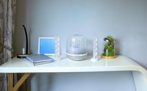 harman/kardon SOUNDSTICKS4沿袭了哈曼卡顿前几代水晶音箱的设计风格,用艺术之美激发灵感,将艺术融于声音系统,创造出优雅醇正的音乐氛围。并在低音炮单元的工业设计上不断精进创新,全封闭的透明穹顶外观将具有线条感的内饰结构一览无余,充分平衡了功能与时尚。扬声器部分采用四个单元串联的方式,透明的长条形设计简洁精巧,与现代设计的家居风格相得益彰,摆放在家中成为一件高雅的现代艺术精品。