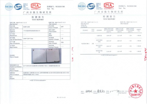 二氧化钛不会变性,不会蒸发,将抗菌层放在近表层,阻止接触反应和物理磨损,能减缓银离子变性;千年舟光触媒抗菌板二氧化钛反应时间快,只需1小时即可起效;纳米二氧化钛载银抗菌剂无毒,反应结果只会产生二氧化碳和水分子。