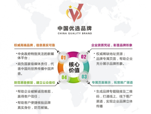 “中国优选品牌“是中国优选品牌促进发展工程联合CCTV《发现•品牌》栏目推出的优秀品牌甄选项目。借助强势电视、网络媒体等自身强大的媒体资源及传播优势,通过媒体独特的视角挖掘各行各业优质品牌,并整合中央电视台以及各大视频媒体平台、移动客户端等渠道,在全国各行业内筛选出优质企业,通过企业名片的形式报道在各行业作出突出贡献、极具影响力的品牌,指导和推动更多中国企业走向品牌发展之路,将“中国优选品牌”打造成自主品牌。