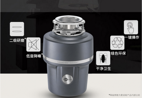 爱适易E100:爱适易是垃圾处理器的发明者,最早开始生产经营垃圾处理器的品牌!美国作为垃圾处理的第一大消费国,其中爱适易占到了90%份额!E100这款为美国原装进口!爱适易的优点是产品稳定性好,交流电机转速更稳定!但是因为欧美国家比较少使用带骨头的肉类!所以爱适易的垃圾处理器存在功率较小,研磨程度不高,对于处理骨头和贝壳类处于垃圾存在不足等问题!