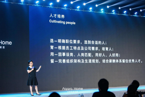 广州建众企业管理咨询创始人兼绿米联创经营首席顾问侯定文在大会上分享了她对企业经营的心得体会,她表示,在疫情迷雾中服务商应保持乐观,在人才、渠道、服务等方面积极布局,抢占后疫情时代先机。绿米联创IoT服务运营中心总经理孙奇凡则回顾了Aqara服务商体系的一路成长。展望未来,他认为物联网的黄金时代已经到来,Aqara将为服务商提供管理培训、产品工具、运营诊断、市场导流等全方位支持,助力服务商抓住黄金十年。绿米联创CMO张莹分享了她在品牌营销上的专业洞见,她提出,智能家居行业卖的不是单一产品,而是一种智慧生活方式,未来Aqara将成为一个有温度的品牌。