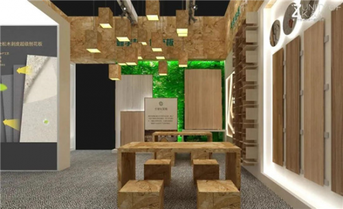 此次杭州装配式房屋展,澳思柏恩选定1D号馆内53展位,搭建了一个极具原生态特色的环保展厅,展示品牌形象和核心产品,最吸睛的要数澳思柏恩实木切片OSB板。用“木块”悬挂、“不规则”组合等形式,极富立体感、层次感的呈现了OSB板的使用场景及应用。同时也将其无醛添加、可塑性高、物理性能强、刨片形态特殊、色泽自然等一一呈现。