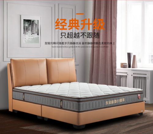 27周年纪念款床垫从面料、填充物到内置弹簧都考究地使用了性价比一级的材质。为了让床垫的支撑性能更强,在床网上方加了一层环保棉有效保护床网,平衡分散压力,在乳胶填充层又加了一层高密度、高回弹的海绵,舒适支撑弹性十足,虽然,使用这些材料会无形中增加产品的成本,但是为了让消费者能够买到放心、安心的产品,东宝用起来也是毫不吝啬。因为品质就是品牌的脸面,是企业的安身立命之本。