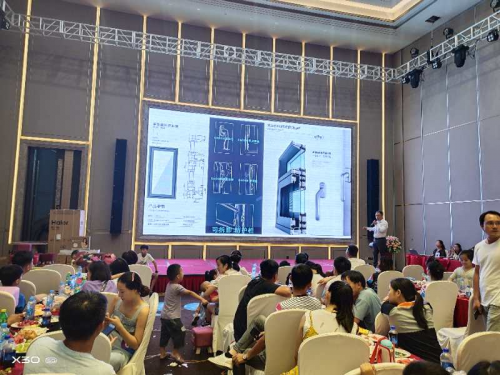 高端系统门窗厂家梵帝尔高管上台向全场业主详细讲解梵帝尔系统窗的结构原理,其中应用的组角注胶、多道密封、双腔体汽车级胶条、坡道式排水、多腔体结构、可拆卸防护格栅等等多项先进技术让系统门窗更加密封防水、安全、隔音、隔热,赢得了全场业主一片赞叹声和掌声。