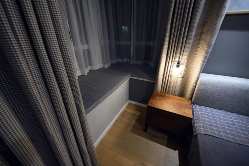 你只知道极简风要素色的窗帘和胡桃木的床头柜,
