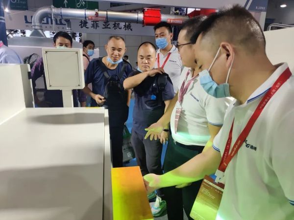 为给客户带来更直观的涂装体验,超哑肤感生产线首次现场进行测试打样,展示生产全流程,让客户亲身感受肤感生产线的工艺效果,并获得了业内专家和观展人员的高度认可!