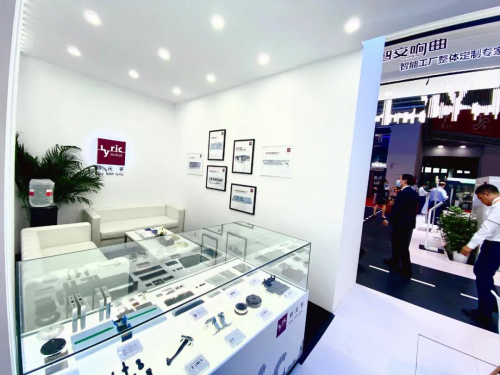 智造音符,在利元亨的展台中跳动、流淌,为“演奏”出更动人的乐章。弧形、流线性乐谱将展品与空间有机结合,使整个空间流畅、灵动且具有张力。