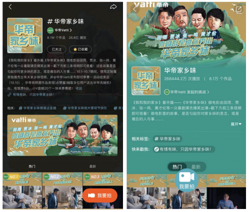 此外,适逢国庆中秋返乡潮,华帝还在“看见中国”的国民平台快手上线了三枚流量炸弹——打造番外曝光大动作、上线#华帝家乡味#挑战赛、“分千万迎国庆”的国庆任意门活动!