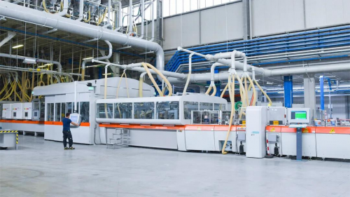据悉,2019年,进强以强大实力购入意大利萨克米CONTINUA+智能整线生产设备,从布料、成型、喷墨到施釉,实现数字化全自动整线生产。日产量达16957㎡/岩板线。从而保证不同厚度、不同规格、不同批次条件下同一花色,从规格、颜色、纹理装饰上实现多样化的柔性定制,生产效率高,交付周期非常短,能够大大满足定制客户的需求。