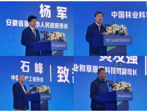 安徽省宿州市人民政府杨军市长、中国林科院副院长储富祥研究员、中国林产工业协会石峰秘书长、国家林业和草原局科技司黄发强副司长分别致辞。