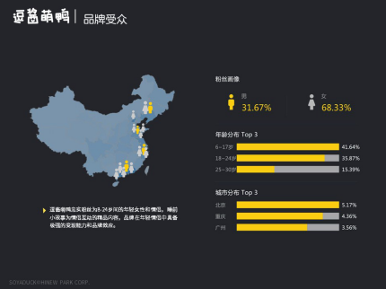 逗酱萌鸭忠实粉丝为8-24岁间的年轻女性和情侣,睡前小故事为情侣互动的精品内容,品牌在年轻情侣中具备极强的变现能力和品牌效应。