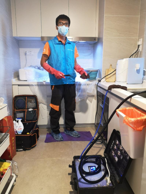 实地广州常春藤物业人员为业主清洗抽油烟机