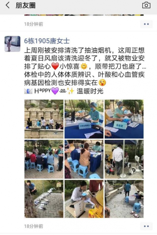 在实地社区,像小邓这样的“热心肠”还有很多。社区暖心,自然能够赢得业主口碑。家住实地广州常春藤唐女士的朋友圈很有代表性:“上周刚被安排清洗了抽油烟机,这周正想着夏日风扇该清洗迎冬了,就又给安排了,贴心。”