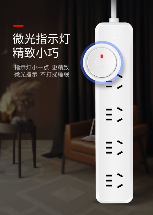 同样,没有繁杂图案的装饰,”小红点“系列排插仅用一粒红色小点点缀,精致小巧的红色微光指示灯,在简洁大方的外观上呈现出一个视觉焦点,宛若平淡日常中突现的一缕惊喜。功能上,使用时按下开关按键,接通电源,红色微光指示灯亮,可同时为电脑、手机、ipad等多种电子设备充电,夜间使用,微弱的光亮也丝毫不会影响睡眠质量,简单而不缺亮点的设计,实属贴心。