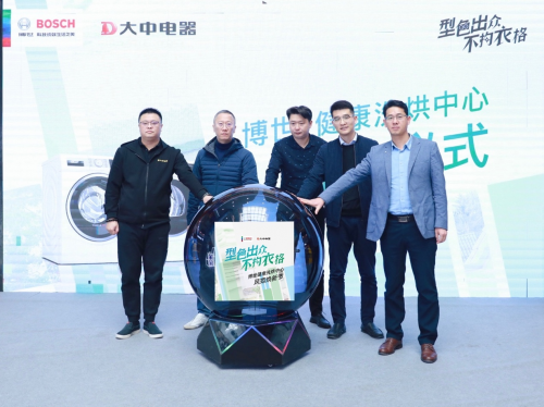 博世家电华北大区销售总监杨贵斌、博世家电华北大区营销总监商振旺、博世家电北京零售经理李明华、大中电器传统家电业务总监周晶武、大中电器白电科主管史宝龙等五位领导共同出席了本次活动。活动现场,博世家电与大中电器达成签约合作,双方希望通过此次风范焕新季的深度合作,共同提升博世家电的品牌影响力,将解放双手、解放阳台的健康洗烘中心生活理念传递给消费者。