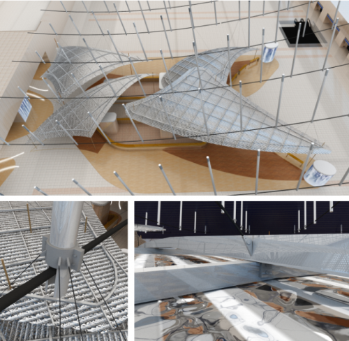 上海浦东国际机场T1航站楼主楼中部大型艺术装置吊装项目,因地处机场特殊的地理位置,要将大型的装置吊装在机场的张弦梁结构上,同时需要结合想要呈现的最终效果。