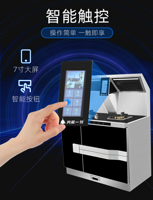 7寸智能触摸屏,图标式界面设计,外观时尚、操作简便,为您打造一场灶台间的科技盛宴。