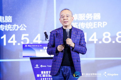 金蝶集团董事会主席兼CEO徐少春在演讲中介绍企业数字化转型金字塔模型时,以运营转型为例,阐释重构数字战斗力的要点。运营转型就是以客户为中心,进行端到端的重构,其核心就是从原来的ERP(企业资源管理)向EBC(企业业务能力)转变,ERP以计划为核心,把企业的资源管理进行重新的计划,进行订单和生产的平衡,而EBC强调要建立五大数字战斗力,即全链路、全场景链接和服务客户的战斗力;全链路、全场景链接和赋能员工的战斗力;全链路、全场景链接和赋能伙伴的战斗力;全链路、全场景链接和管理万物的战斗力;全链路、全场景数据驱动业务的战斗力。