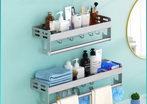 QURATTA这款浴室置物架适用于浴室,厨房,集美观,实用于一身。将洗浴所需放在最顺手的地方,让起居生活景然有序。采用太空铝材防水防锈,利用墙面垂直收纳空间,让小家越住越大。