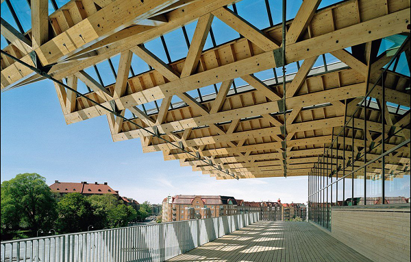 近年来,随着中国生态城、绿色建筑、装配式建筑和绿色建材的发展,现代木结构建筑也得到了越来越多的应用和关注。而在遥远的北欧,早在一百多年前,瑞典就开始了可持续森林管理和胶合木的生产。在今天的瑞典,不仅有服役近百年的胶合木结构火车站,更有高层木结构住宅和办公、大跨度木结构体育场和桥梁、木结构新城等。这些现代木结构项目和生态城、绿色建筑、清洁能源一起,成为世界建筑行业一道绿色的风景线。
