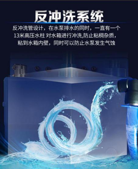 如果是用于厨房,有各种不可避免的软硬残渣,凯德赛有着40mm的粉碎切割泵,可轻松将厨房的残渣完全排出。另外,粉碎切割泵对油污的处理排放能力也更强,配合反冲洗管,不用担心油脂凝聚。