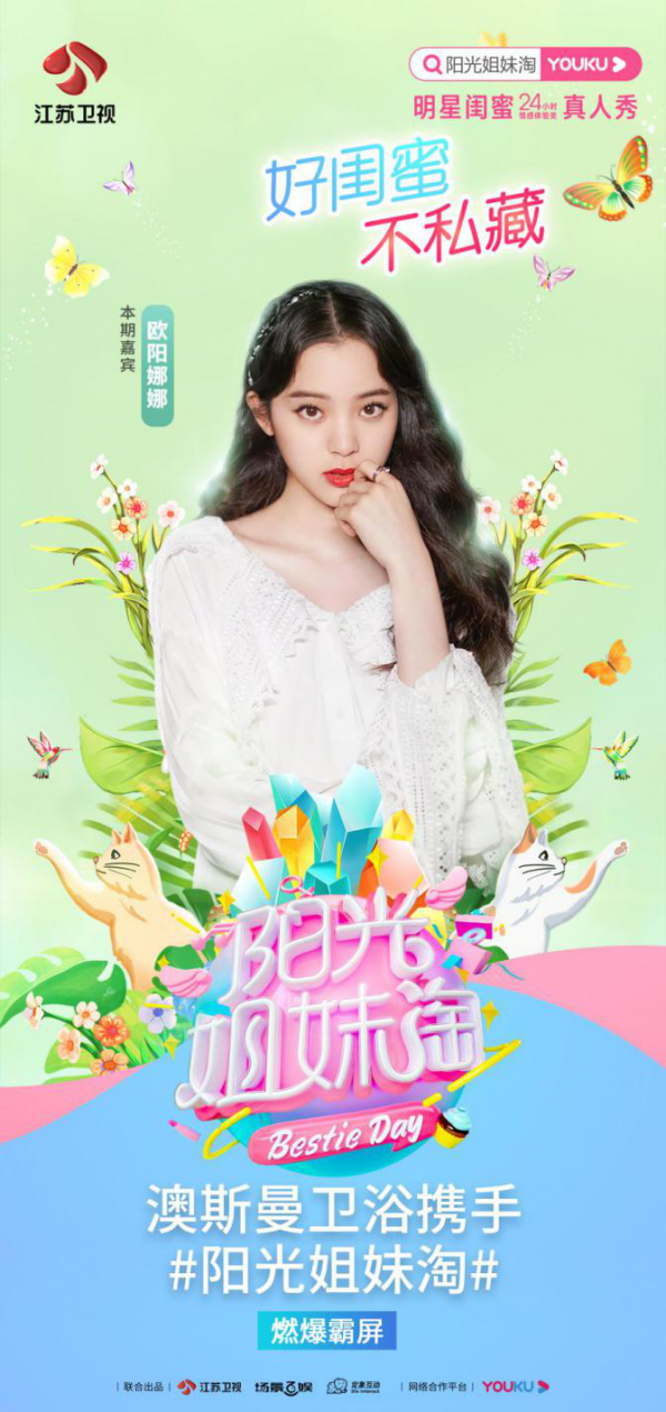 疫情后时代,一档有温度的明星闺蜜真人秀栏目——《阳光姐妹淘》在江苏卫视首播,迎来了欧阳娜娜和她的元气“姐妹淘”,在这里她们一起度过24小时的甜蜜时光。