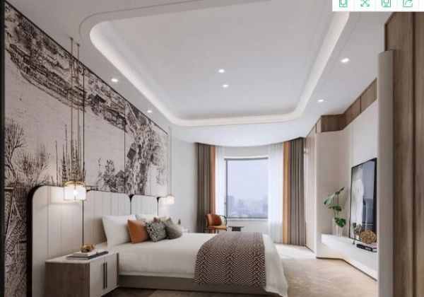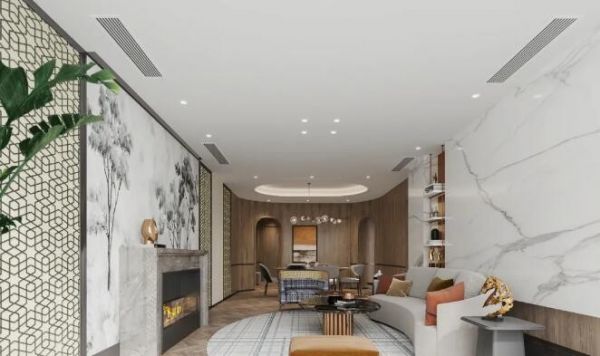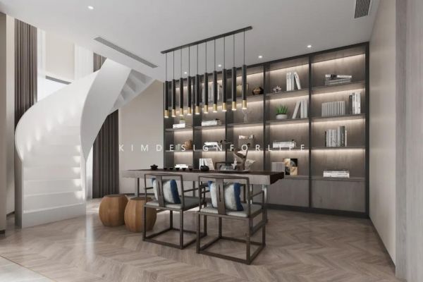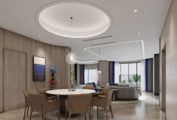 滨江壹号空中别墅项目位于长江江畔的南京滨江壹号的百米高空的四十三、四十四层,除满足基本功能的需求外,在空间设计上轻装修重装饰,使用暖色系的颜色可以表现温馨。