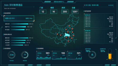 “智慧酒店拥有私域流量后,可以对用户订房偏好、生活习惯偏好、客房服务偏好等数据进行深入分析,酒店用品库存实时监控及酒店设备能耗管理与监测等多维度构建符合自己的业务需求的运营数据模型并形成可视化报表,动态追踪运营数据,持续优化运营策略,提升酒店竞争力。”Ayla艾拉物联CEO刘渝龙如是表示。