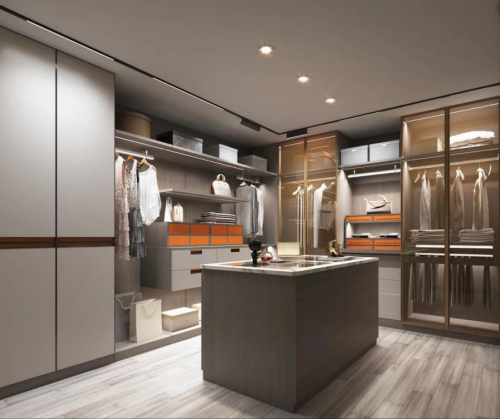一般来说,市面上常见的定制衣柜的板材类型有颗粒板、多层板、细木工板等等。不过,经过我的个人调查发现,颗粒板在加工的过程中,为了把碎木屑等压制成板,用到了更多的胶水,同时颗粒板的密度不均,更容易受潮吸水,导致柜体变形。所以,相对其他板材来说,如果家里有老人小孩的家庭,个人不太推荐颗粒板。