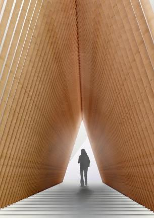 哈尔滨工业大学着眼于“过去”,“当下”与“未来”的时间轴线,以“互动的链接”为主题,将这三个时间节点以设计场景串联,产生空间上的互动与链接,形成记忆的拼图,站在当下时空,得以窥见过往,展望未来,牵引着对城市前世今生的文化传承。