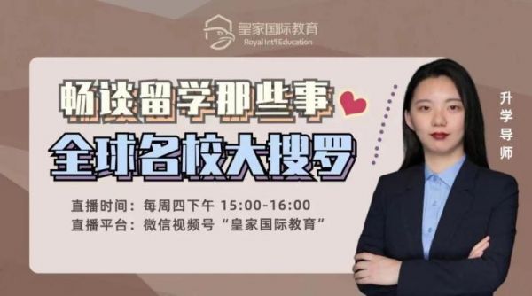 除此之外,从留学形势分析、数理化难题讲解、再到各种选校攻略,每周四皇家国际教育都会在微信视频号进行全天直播,全方位解答同学们在留学过程中的疑问。