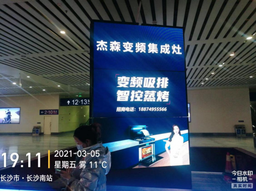 杰森集成灶长沙南高铁站巨屏广告强势霸屏
