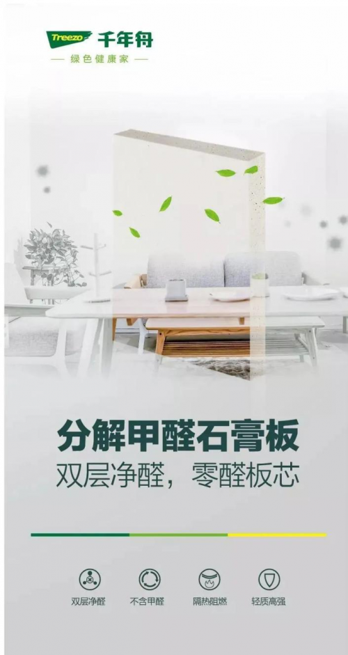 千年舟分解甲醛石膏板使用天然原木护面纸,具有轻薄、光滑、强度高、无污渍、纤维长、韧性好的特点。另外,它的纸面与石膏芯结合更紧密,纸面不易与石膏芯分离,使用寿命更长。