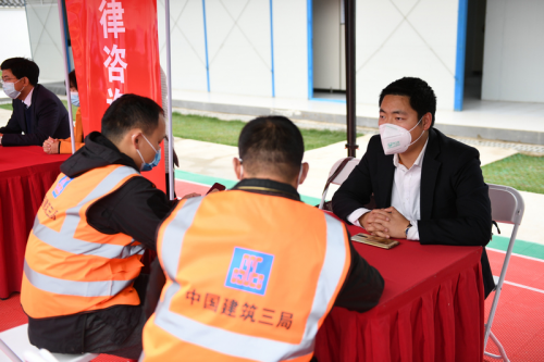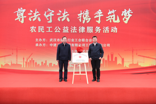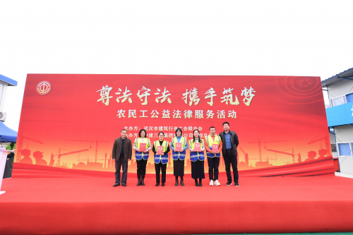在消费者权益日来临之际,3月12日,由武汉市建筑行业工会联合会主办、中建三局总承包公司承办的“尊法守法•携手筑梦”农民工公益法律服务活动在项目工地举行,为现场100余名职工、工友普及《保障农民工工资支付条例》和《民法典》涉及劳动关系的法律知识,引导广大职工、农民工友增强法治意识。现场为“农民工公益法律服务站”揭牌,并向中建三局总承包公司5名项目工会工作者颁发特邀调解员聘书。