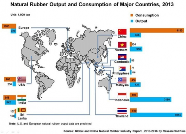泰国为天然乳胶原料在目前世界上产量最大的地区