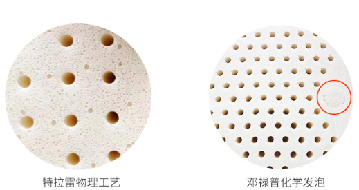 但是有一种更高级的工艺-18℃冷发泡工艺,将温度精确控制在18℃之下,比国内热工艺技术低20摄氏度,内部孔隙更加均匀细腻,完整发泡,无杂余颗粒,可以有效保证乳胶含量不流失,乳胶含量会相对高一些,乳胶含量通常在90%以上。